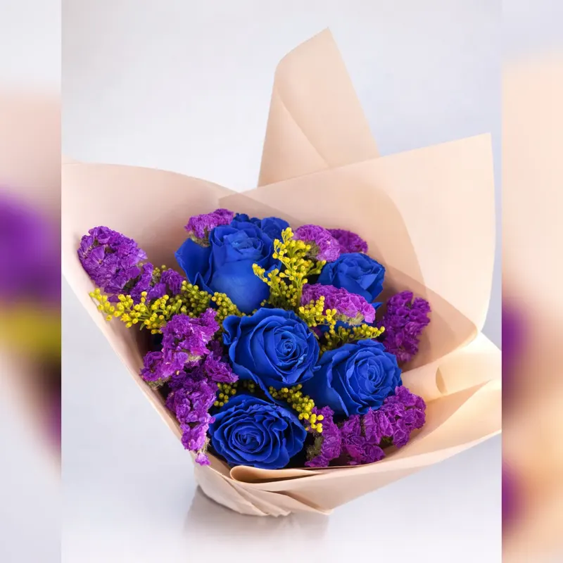 You’re Mine is a confident expression of love — bold, intentional, and unmistakably romantic. Rich blue roses are paired with textured purple blooms and fresh seasonal accents, wrapped in Korean silk paper for a clean, modern finish. Designed for those who know what they feel and aren’t afraid to say it.